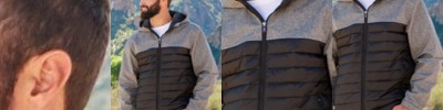 - Spandex blend ribbed-knit inner collar, cuffs and waistband