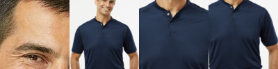50% polyester/50% cotton jersey knit * Two-button placket * Set-in sleeves